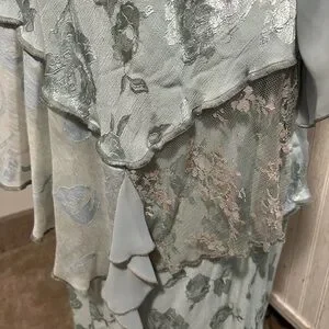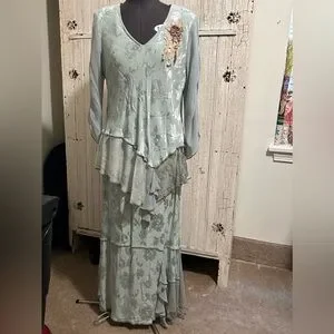 Embrace elegance with this 1980’s vintage chic long sleeve dress, featuring a delicate floral pattern. The soft green hue adds a touch of sophistication, making it perfect for any occasion.
