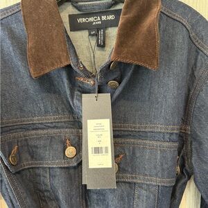 Veronica Beard Dark Denim Jacket with Brown Collar