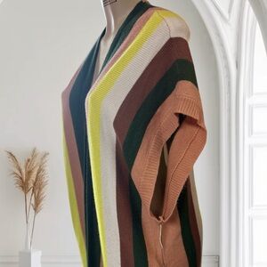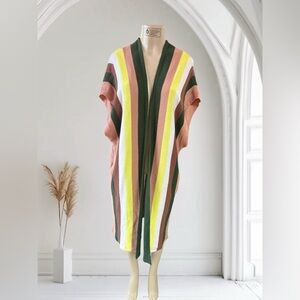 Vibrant striped cardigan. Open front design. Perfect for layering.