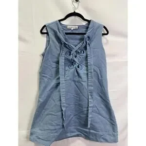 English Factory Blue Denim Lace Up Mini Dress Size M with Paint Chipping on Ring