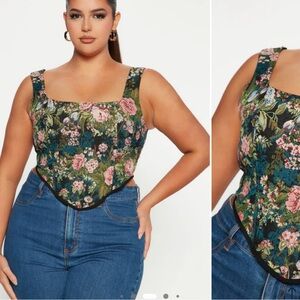 Stylish crop top with a floral pattern. Features pink and green hues. Ideal for a trendy look.A1