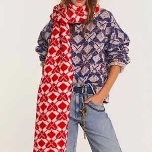 NEW! Free People Red and White Scarf