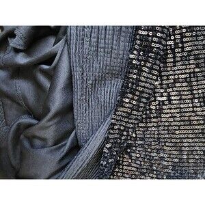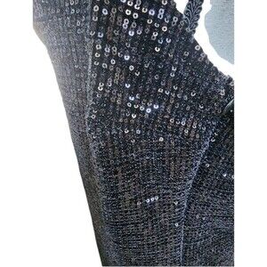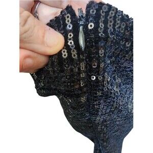 The Sky Plus Black Sequin Minidress in Size 2X is a stylish and sexy bodycon dress perfect for various occasions like weddings, parties, or formal events. The dress features a sleeveless design with a scoop neck and strappy sleeves, along with a zip closure for easy wear. Made with a polyester and spandex blend, this woven fabric dress is lined for added comfort and quality. The dress is accented with sequins and has a clubwear, city, and 90s theme, making it a trendy choice for any season. Hand wash only to maintain its appearance. CLOTHING AND FABRIC ITEMS: All clothing and fabric items have been steam cleaned and/or washed.