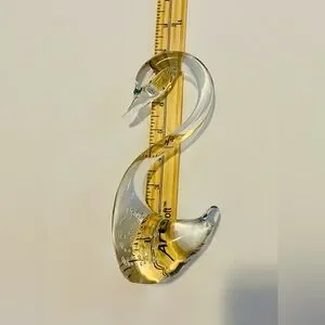 Graceful Bullicante Style Clear Glass Swan Figurine, Paperweight, Vintage