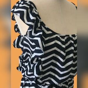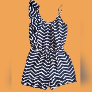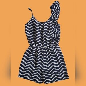 Envy Me Navy and White Chevron Striped Romper W/Ruffle Sz. MED
