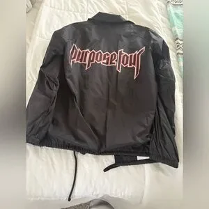 Black jacket with 'STAFF' text on the front. Button-up style.