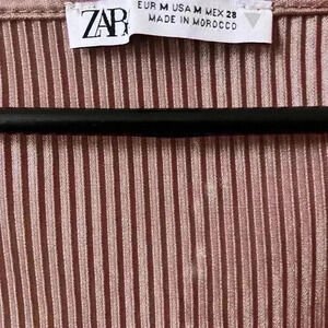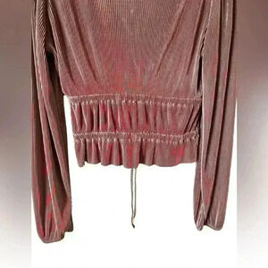 Zara Woman's Cropped Pleated Long Sleeve Top Pink Mauve