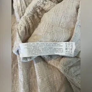 Elegant cream dress with textured fabric. Short puffy sleeves and tiered skirt. Ideal for casual outings.