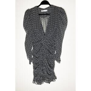 Zara Women's Draped Ruched Mini Dress Puff Long Sleeve Sheer Lined Polka Dot