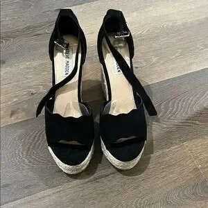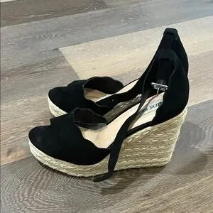 Elegant black espadrille wedges by Steve Madden. Stylish and versatile for any outfit.