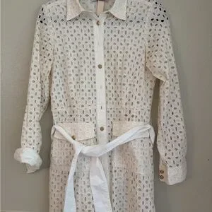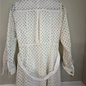 Chic long sleeve lace dress by Zara. Features button-down front and waist tie. Perfect for stylish outings.