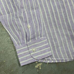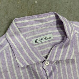 Willaim 100% Linen Dress Shirt Purple Striped Long Sleeve Made in Italy 18" XXL