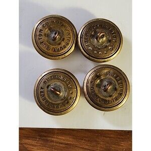 Vintage Brass Military Band Buttons Lot (4) – Lyre Harp Musician Insignia