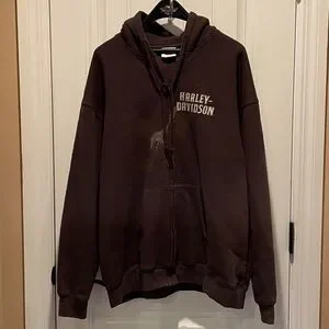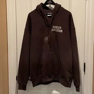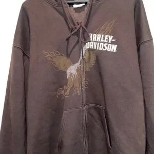 Harley-Davidson Motorcycles Men’s XLL Dark Brown Zip-Up Draw string Hoodie 2009