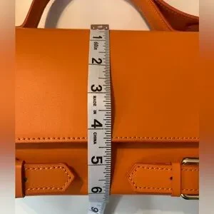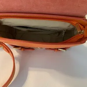 Bevini genuine Italian leather orange purse , main compartment one zip pocket , front snap closure , gold hardware, removable strap.