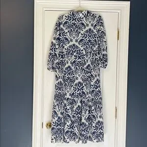 Chic long sleeve dress with navy floral design. Perfect for stylish outings.