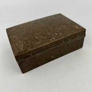 Vintage Beautiful White Floral Etched Brass Trinket Jewelry Box*Wood Lined
