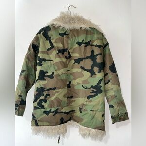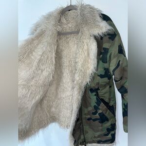 Topshop Camo Faux Fur Lined Jacket - Size: 10
