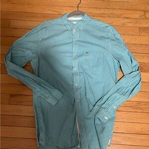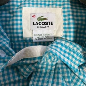 Stylish Lacoste button down shirt with a teal checkered gingham pattern. Size Medium (40), regular fit. Perfect condition - never worn, new without the tags.