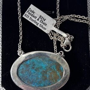 NEW Natural Chrysocolla Pendant & 18” Chain (.925 Sterling Silver)
