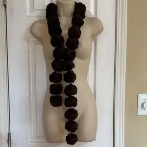 Vintage fun faux balls Brown Pom-Pom Scarf