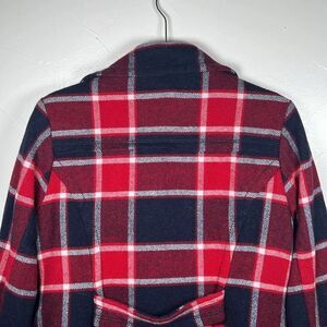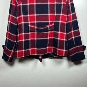 American Eagle Plaid Pea Coat Women's Size Medium Red Blue Preppy Classic