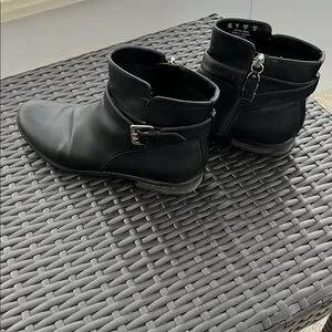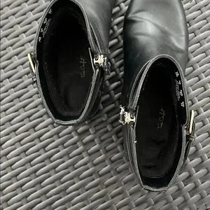 Step out in style with these sleek black ankle boots. Perfect for any occasion.