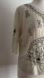 A gorgeous, genuine Art Deco era blouse in a sheer, lightweight silk! Very pale green, like a cream colour with a hint of mint. The top has a lovely drape, with snaps at either side to close off the waist, and a tie at the front. The sleeves are roughly waist length, with a thoughtful slit at the elbow. There is so much beadwork here! The neckline is traced with two rows of beads, while the front features a magnificent pattern with a row of evil eyes along the bottom, and one on each sleeve. A stunning piece! Please see the measurements for best fit.