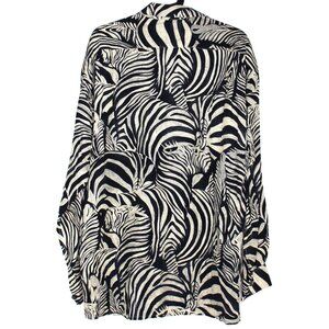 Equipment Mens Medium Rayon Flowy Zebra Patterned Loop Collar Button Up Shirt NEW RARE N1341
