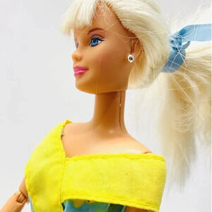 MATTEL BARBIE Doll Blond Hair Articulated Elbow Knees Earrings Dress 12" Tall
