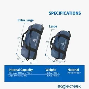The 'No Matter What' line is one of Eagle Creek's popular collections, emphasizing resilience and versatility. These bags are designed to withstand the rigors of travel, often incorporating water-resistant fabrics and reinforced construction. The rolling duffle bag specifically offers the convenience of wheels for easier transport, combined with the spaciousness of a duffle.