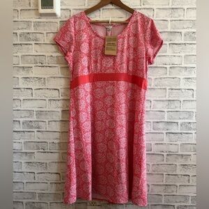 NWT! Women’s. L.L.Bean. Pink/coral printed short sleeve dress. Knee length. Size XL.