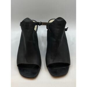 COCLICO Women's Black Leather Square Peep-Toe Heeled Sandals SZ 38.5(US8.5)