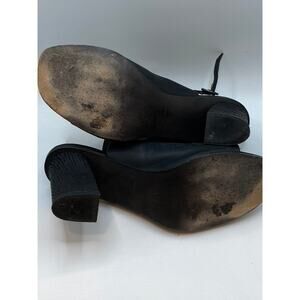 COCLICO Women's Black Leather Square Peep-Toe Ankle Strap Heeled Sandals SZ 38.5(US8.5)