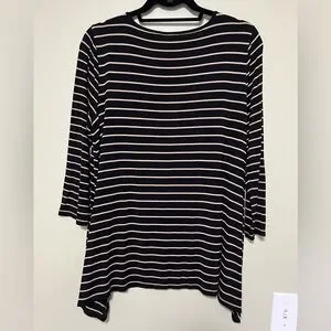 Cable & Gauge Black and Tan Striped Long Sleeve Top