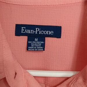 Evan-Picone Sheer Peach Button-Up Blouse w/ Roll Tab Sleeves