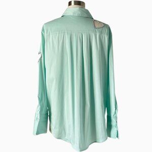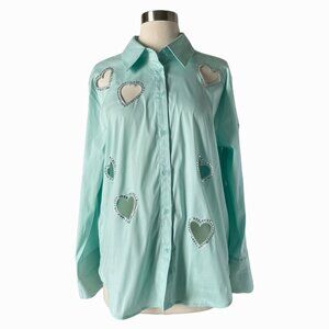 Alice + Olivia Finley Heart Cutout Embellished Button Shirt M Mint Cotton Top