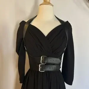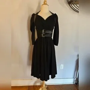 Fantastic dress by Micheline Pit. Can be worn on or off the shoulders. Fabric is good quality and sturdy with slight stretch. Belt shown is by dusturbia and not included. Excellent condition, worn once.