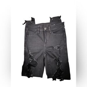 American Eagle Outfitters black high-rise jeans with distressed detailing. Size 2 Regular.
