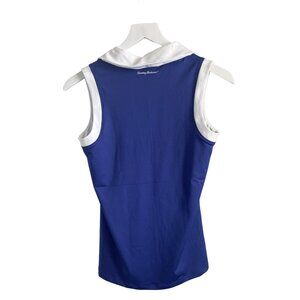 Elevate your golf game with this Tommy Bahama sleeveless polo. The UPF 50 protection shields your skin, while the moisture-wicking and quick-dry fabric keeps you comfortable under the sun. The stylish blue and white design with a zip collar adds a touch of sophistication to your game, ensuring you look and feel great on the course.
