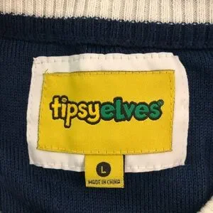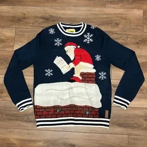 Tipsy Elves Ugly Sweater - Santa on the Roof Chimney - Blue Red White