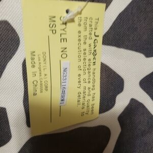 The J. GARDEN Giraffe print Embroidered tote bag is a stylish and spacious shoulder bag perfect for carrying groceries or everyday essentials. The large tote features a unique giraffe print with embroidered accents, adding a touch of personality to your outfit. The bag has a zip closure, brown nylon handles, and brown hardware for a cohesive look. With a synthetic exterior material and no lining, this tote is both durable and easy to clean. Ideal for women who appreciate animal print patterns and a touch of leopard theme in their fashion choices.