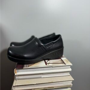 Sleek black mules with a comfortable slip-on design. Ideal for daily wear. Preowned item in good condition