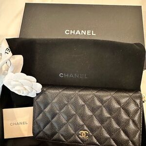 Elevate your style with this Chanel black quilted leather wallet. Perfect for any occasion, it combines elegance and functionality.