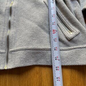 banana republic jacket, women's zip jacket, textured gray jacket, medium size jacket, casual women's jacket, gray zip jacket, cotton blend jacket, professional jacket, women's outerwear, zippered pocket jacket, stylish women's jacket, fall wardrobe jacket, light gray jacket, motorcycle jacket, biker jacket, grunge jacket