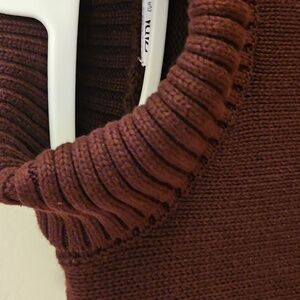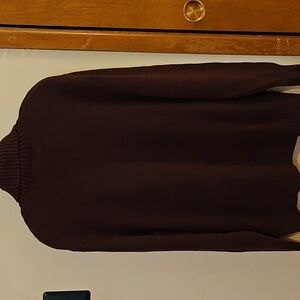 sweater is a dark plum- more purple than shown in the photos. it isn't brown. the pocket is a lighter purple color