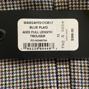 rag & bone Andi Full length Trouser High Waist Ankle Wide Leg /Color: Blue plaid