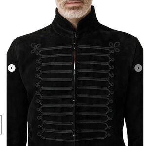 Features a sleek mandarin collar, front hook closure, and detailed sleeves/cuffs that give it JV’s signature rock-inspired, refined look. Slim, tailored silhouette that flatters without restricting movement.