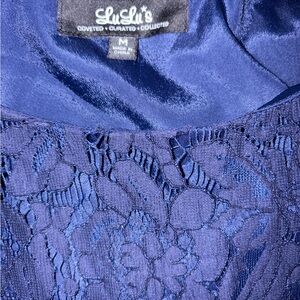 Lulu's Sleeveless Navy Blue Floral Lace Peplum Top -EUC