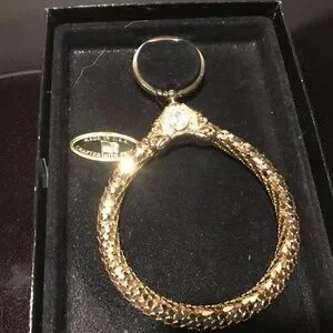 Vintage Whiting and Davis Gold Mesh Keychain and Cigarette Case. Keychain is three inches in diameter with Glass Setting at the top. Small ring for keys attached. Could be used as a bracelet if your wrist is small enough. Cigarette Case is three inches wide by five inches high and is perfect as a clutch. Brand new straight out of the past. If you like Gold Mesh this is for you.